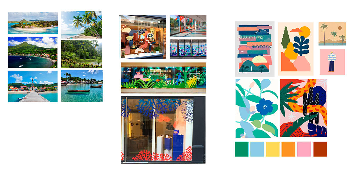 Composition graphique en accord avec les couleurs et paysages typiques de la Caraïbe.